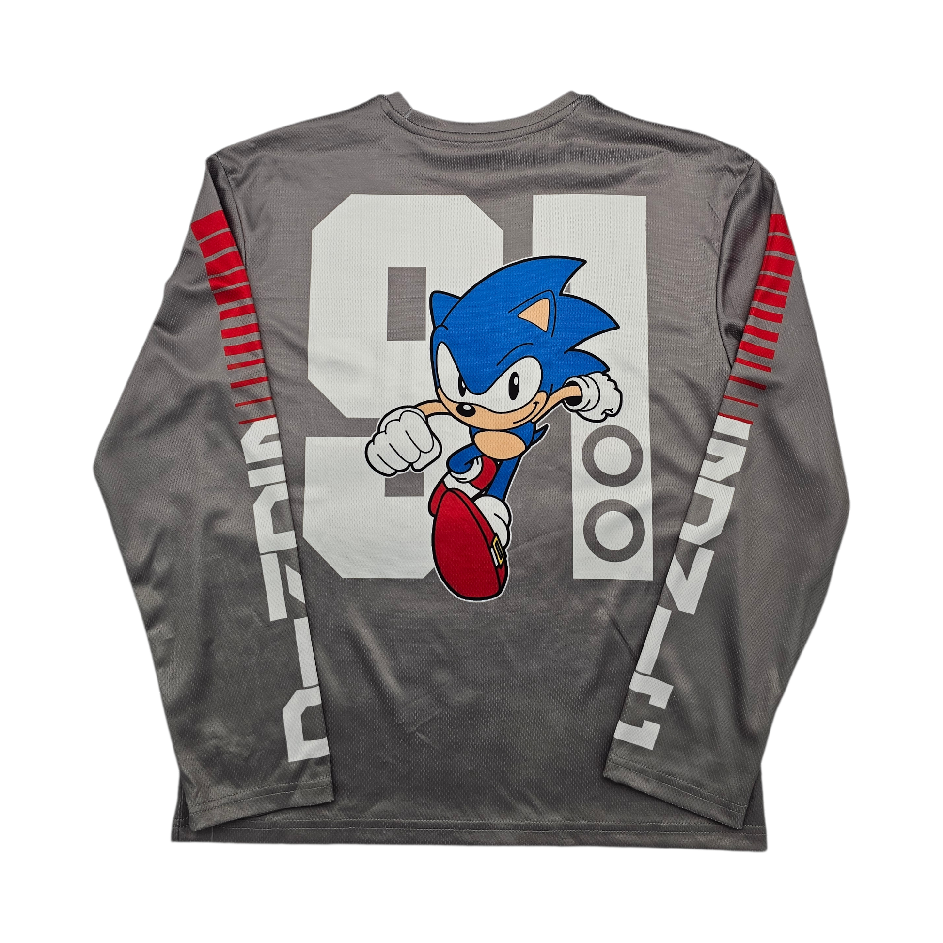 Celebrate the year Sonic first dashed into our lives with this high-energy long sleeve tee. Featuring Sonic in full sprint over a bold “91” graphic, this shirt channels pure retro gaming vibes. Red sleeve stripes and vertical “SONIC” text amplify the motion, making it a must-have for longtime fans and new speedsters alike. Soft gray fabric and dynamic design make it perfect for everyday wear or gaming marathons.
